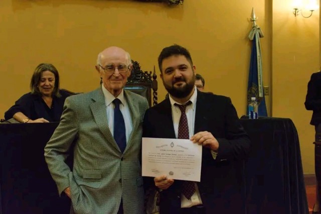 El pasado 8 de noviembre de 2022 en Ciudad Autónoma de Buenos Aires, el Prof. Javier Rodrigo (graduado reciente en la Facultad de Humanidades y Ciencias de la UNL) fue reconocido por la Academia Nacional de la Historia con el Premio al Egresado con mayor promedio en la carrera de Historia de la UNL, promoción 2021. La distinción fue entregada por el presidente de la Academia, Dr. Natalio R. Botana.