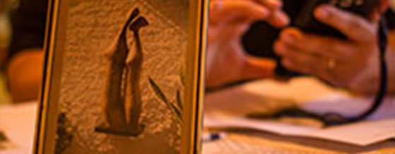 Fotos de obras y también de su familia durante el encuentro que tuvo lugar en la Muestra "Migraciones tangibles: herencia francesa y francófona en Santa Fe" en el Museo desde 30/11/18 hasta 28/02/19.