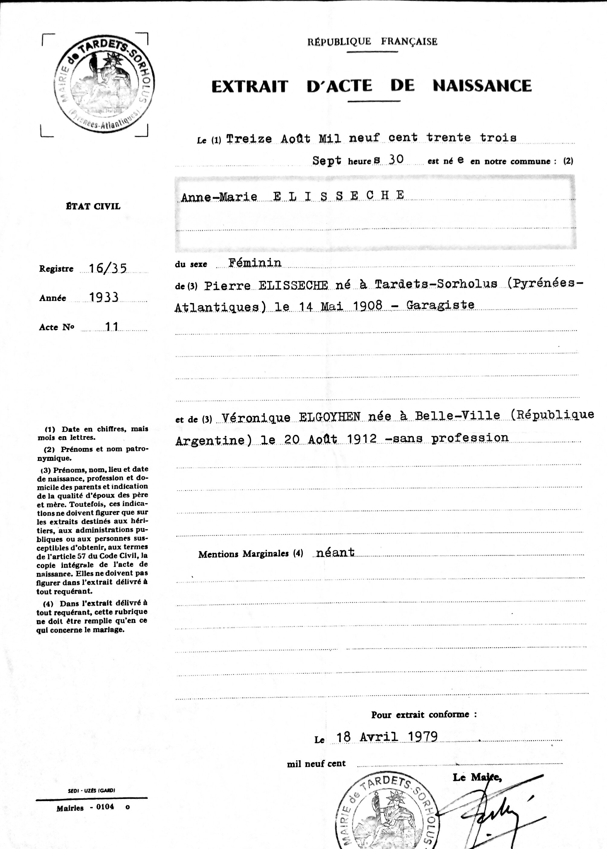 franceses provenientes de Tardets, comparte recuerdos y relatos familiares vinculados a la llegada y radicación de su padre en la ciudad en 1937.