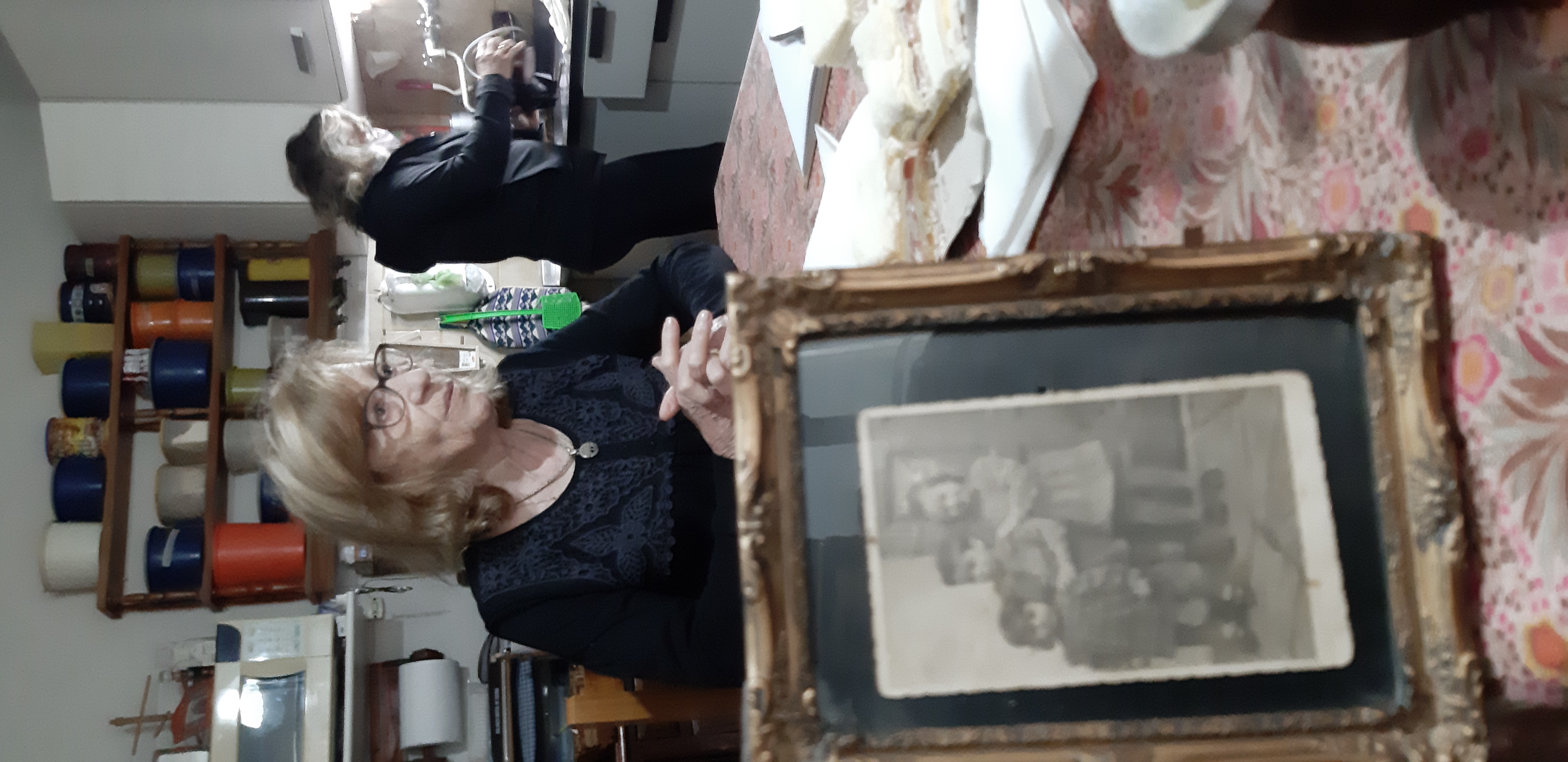 Durante gran parte del encuentro está presente su hija, quien interviene ocasionalmente en la conversación, colabora buscando fotografías y acompaña el relato