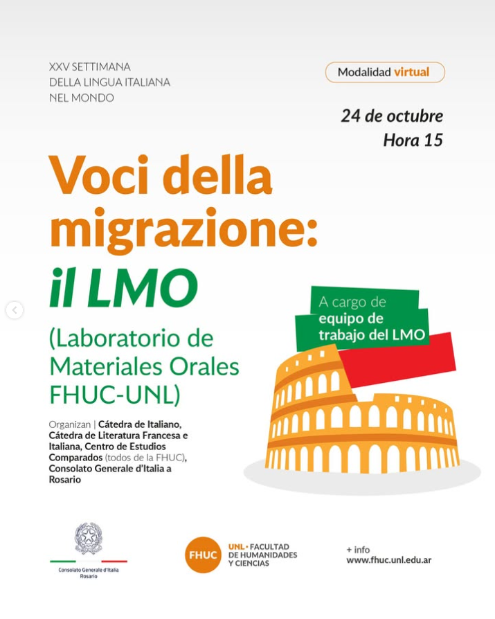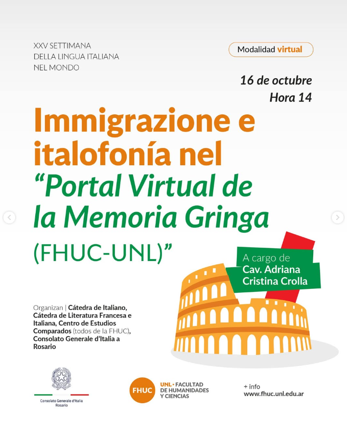 🔸Las actividades están organizadas desde la Cátedra de Italiano, la Cátedra de Literatura Francesa e Italiana, el Centro de Estudios Comparados (todos de FHUC – UNL), y el Consolato Generale d’Italia a Rosario