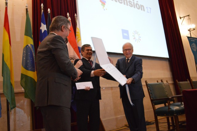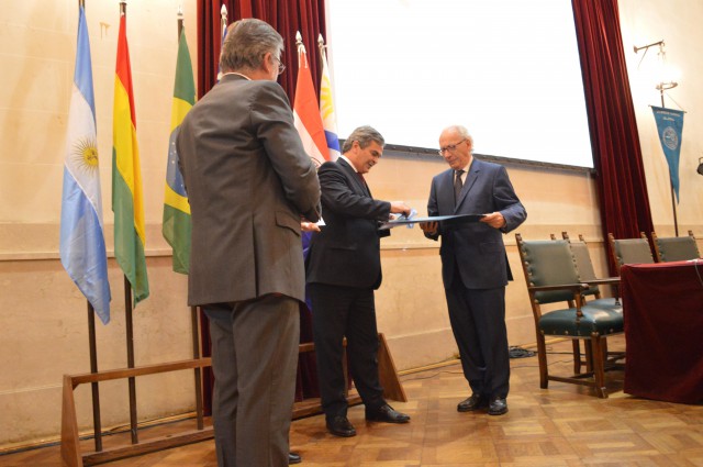 Esta mañana en el Paraninfo de la Universidad Nacional del Litoral se le entregó el Título de Doctor Honoris Causa de la UNL al Dr. Alain Rouquié.