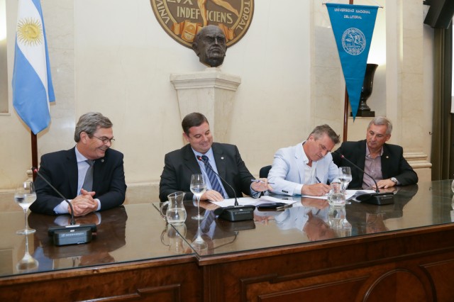 En la firma del acuerdo acompañaron al rector el director del Plan Maestro de Infraestructura de la UNL, Miguel Irigoyen; Marcelo Saba, director de Obras y Servicios; los decanos de la Facultad de Arquitectura, Diseño y Urbanismo, Sergio Cosentino; de Ingeniería y Ciencias Hídricas, Raúl Pedraza, y de Ciencias Médicas, Larisa Carrera; secretarios y autoridades universitarios, representantes del Banco Credicoop, de Sancor Seguros, y miembros de la comisión promotora de la declaración de Monumento Histórico Nacional a la Manzana Histórica de la UNL.