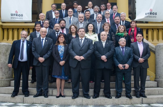 Epígrafe de foto. Plenario de rectoras y rectoras de universidades latinoamericanas que integran la AUGM. 2019, Porto Alegre, Brasil